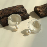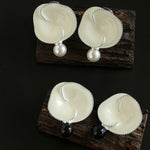 Enamel Flower Pearl Black Agate Earrings gembea jewelry