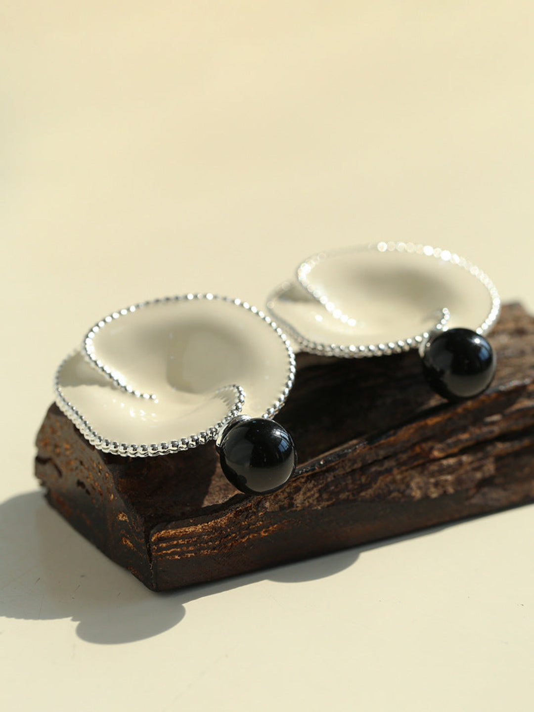 Gembea Jewelry Enamel Flower Pearl Black Agate Earrings