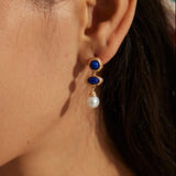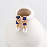 Vintage Lapis Lazuli Pearl Drop Earrings-Gembea Jewelry