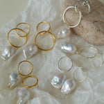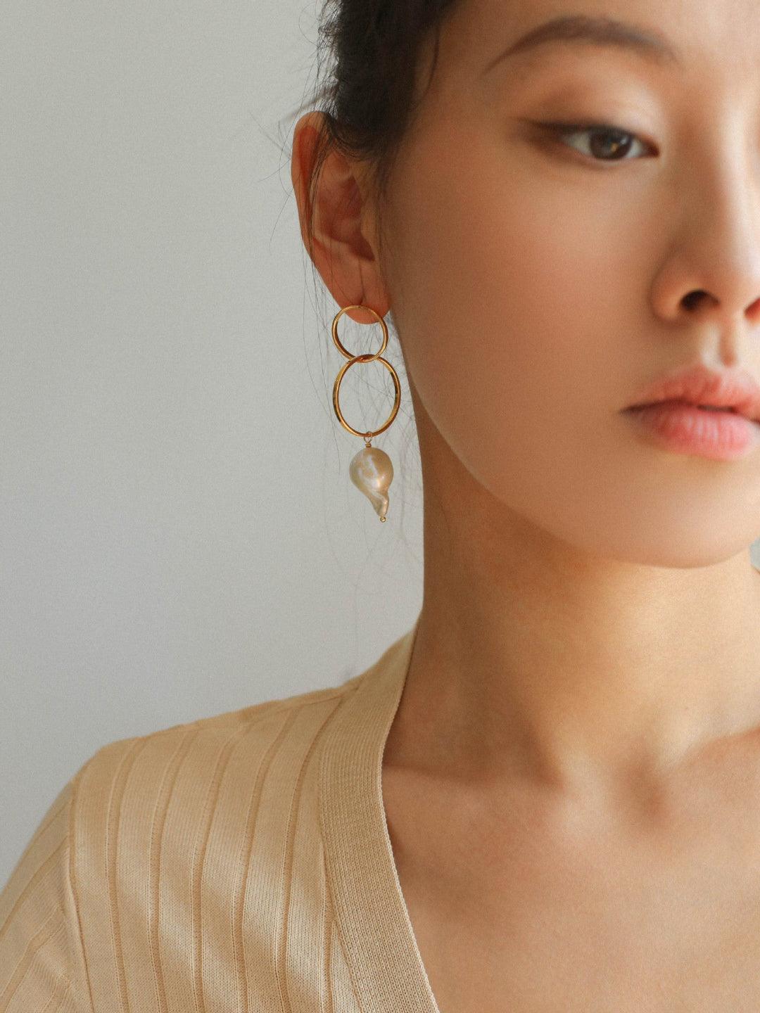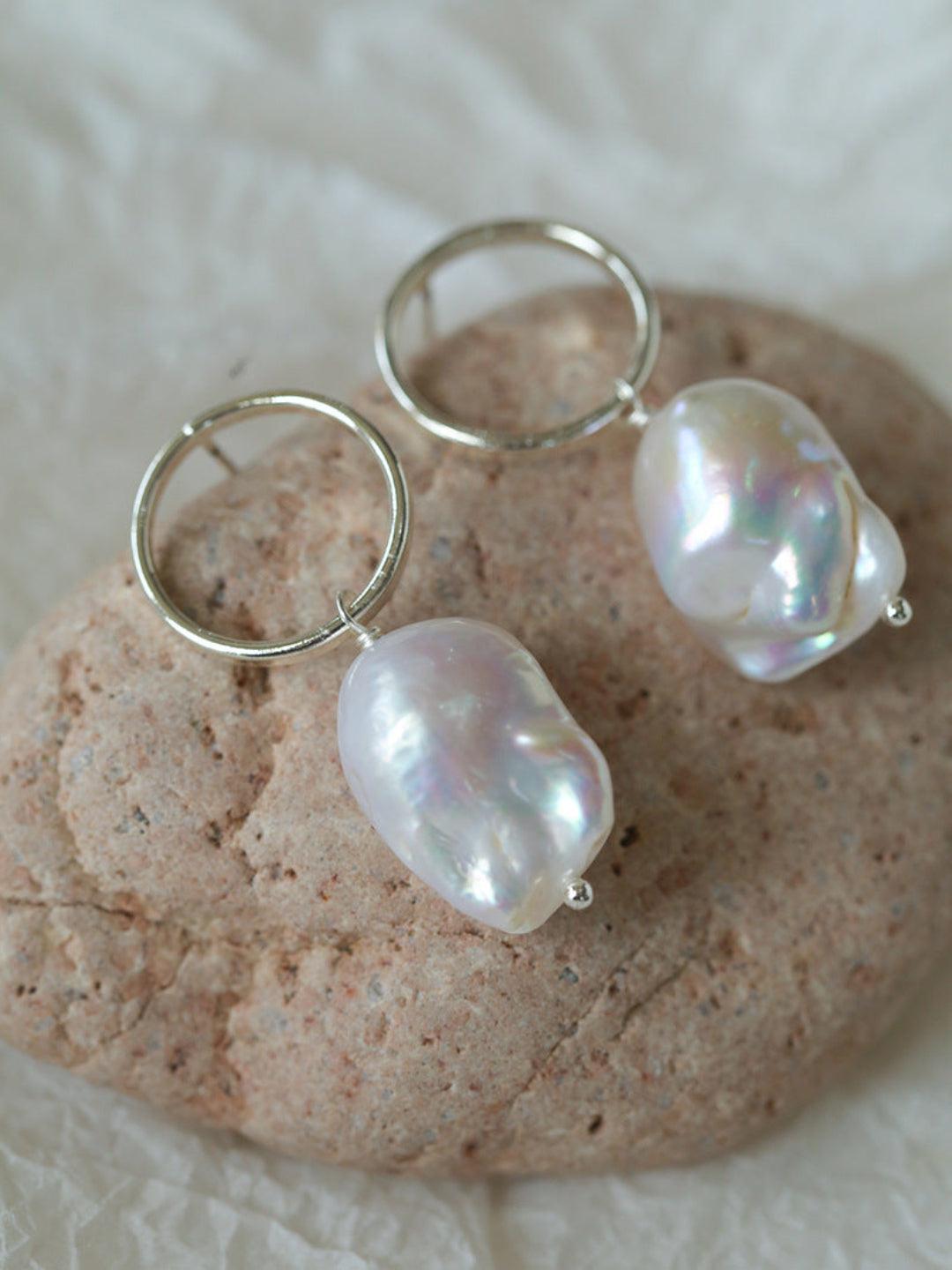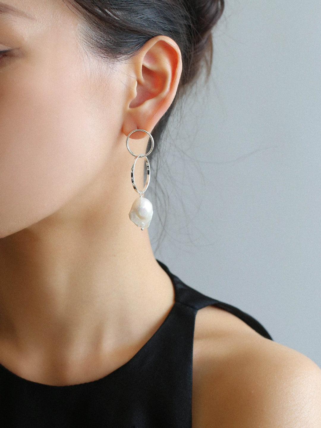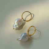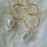 Metal Circle Baroque Pearl Drop Earrings - Gembea Jewelry
