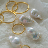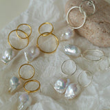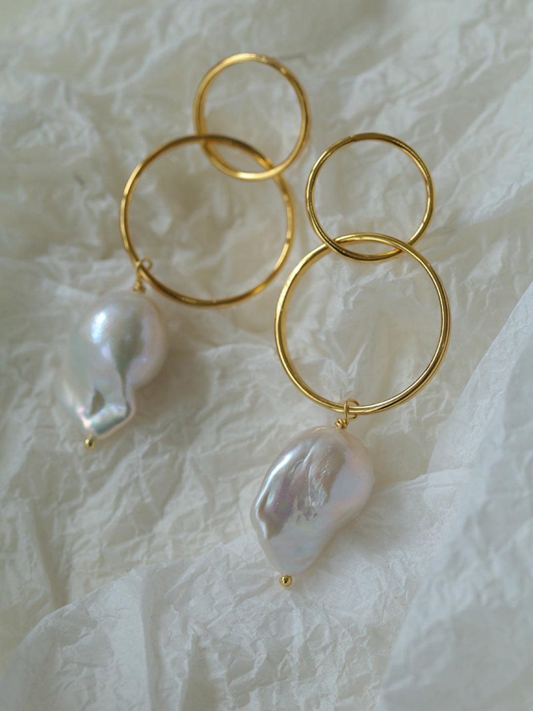 Metal Circle Baroque Pearl Drop Earrings. These elegant earrings feature lustrous baroque pearls suspended from sleek metal circles, combining modern design with classic beauty. Perfect for adding a touch of sophistication to any outfit, they are ideal for both casual outings and special occasions. Shop now to elevate your accessory style!