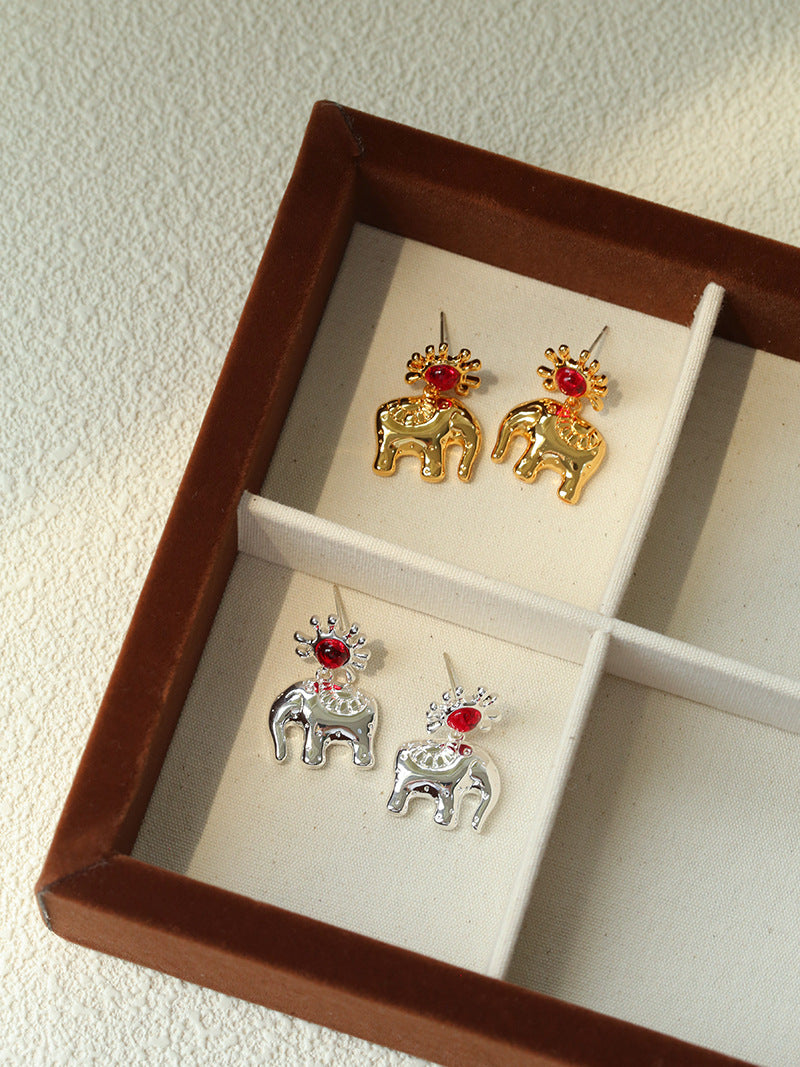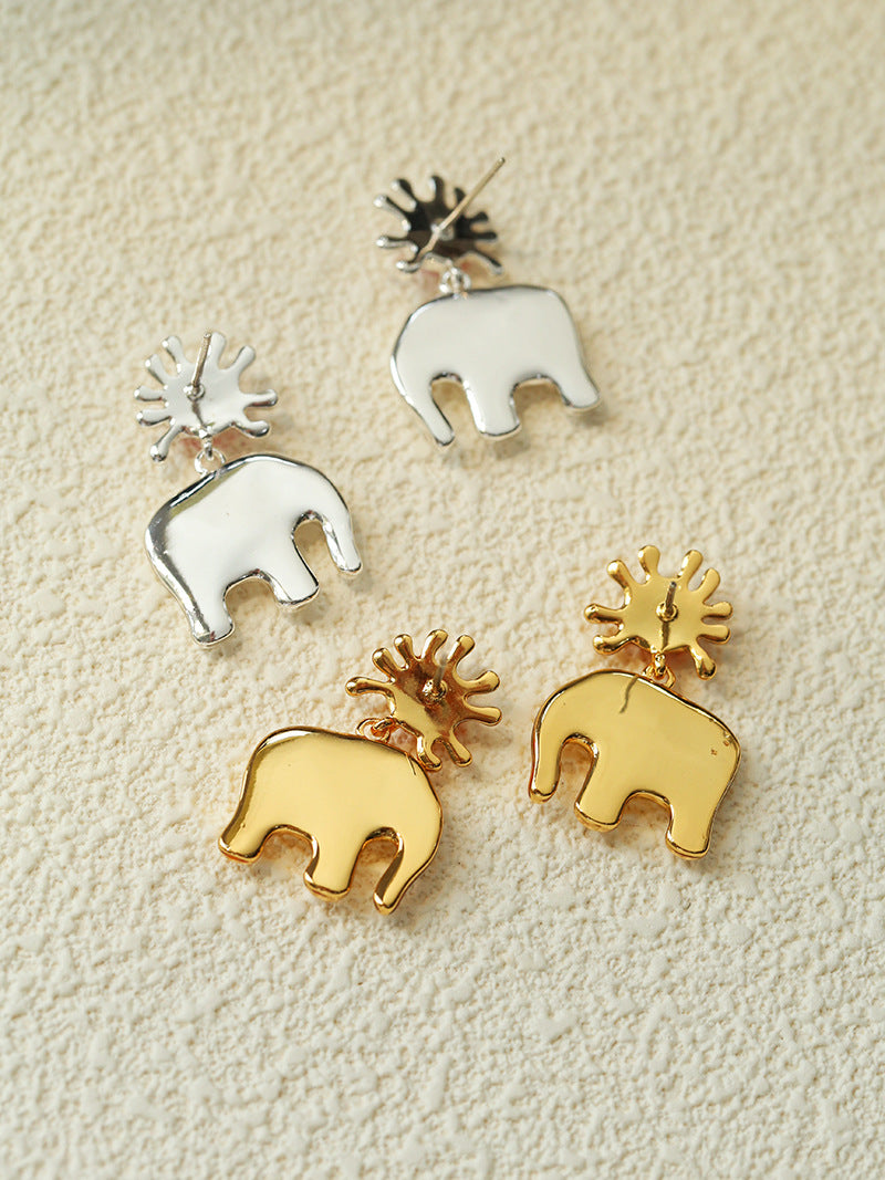 Sun Elephant Gold Silver Drop Earrings gembea jewelry