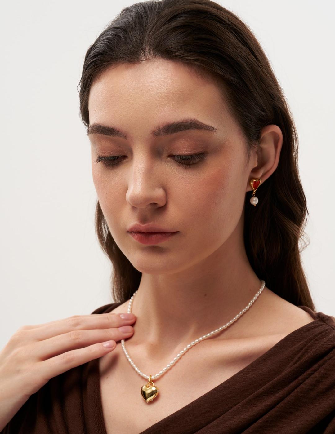 The Vintage Heart-shaped Red and Green Enamel Pearl Earrings are inspired by heirloom treasures passed through generations. Intricate heart motifs, adorned with deep red and rich green enamel, meet luminous pearls that soften the bold colors with timeless elegance. Evoking the romance of antique jewelry and the craftsmanship of old-world artistry, these earrings blend playful charm with refined sophistication — perfect for adding a touch of vintage romance to both everyday looks and special occasions.