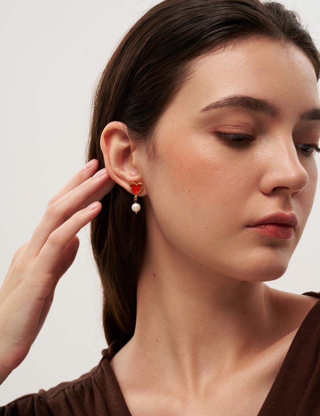 Vintage Heart-shaped Enamel Pearl Earrings gembea jewelry