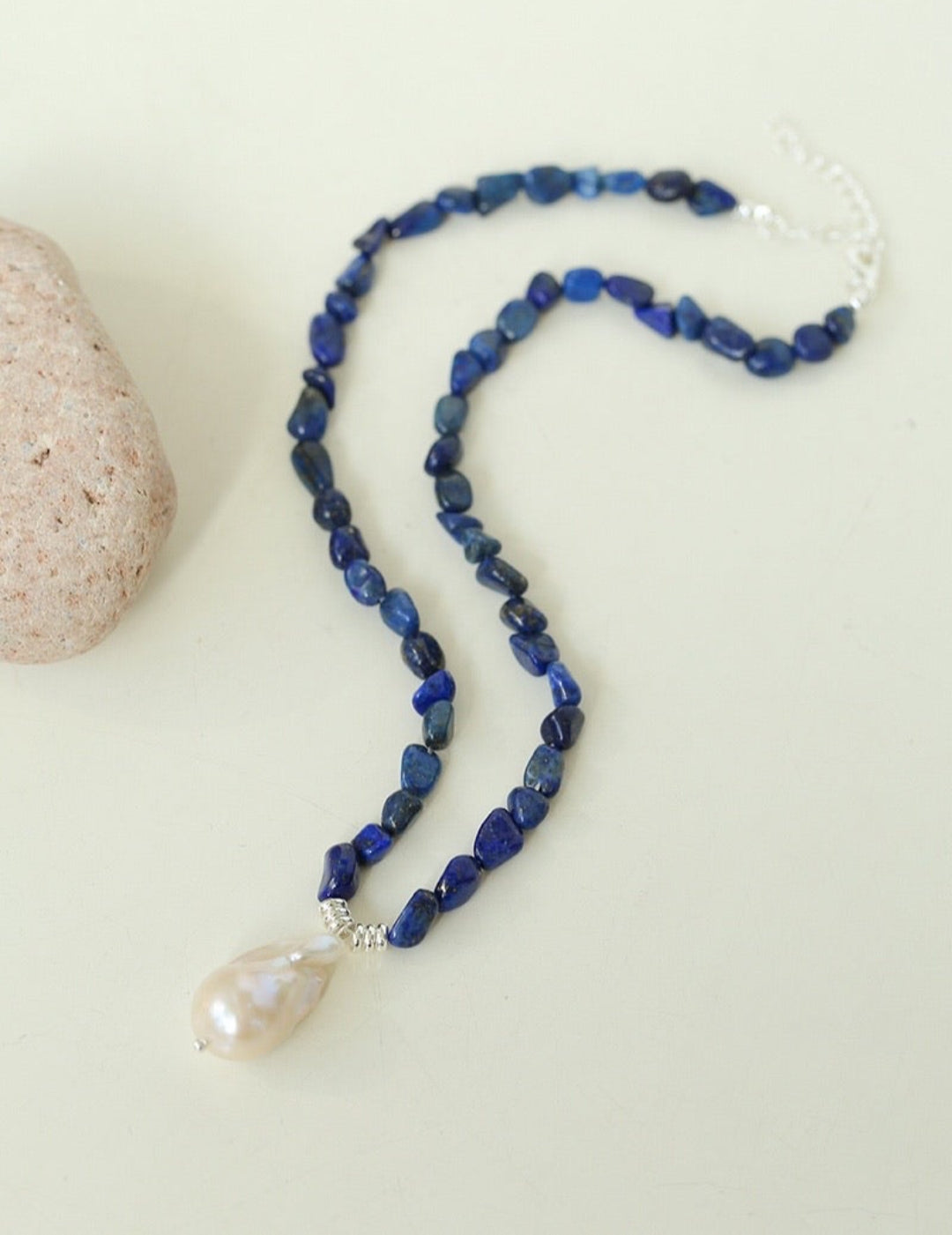Sea's Embrace Series Lapis Lazuli Pearl Necklace - Gembea Jewelry