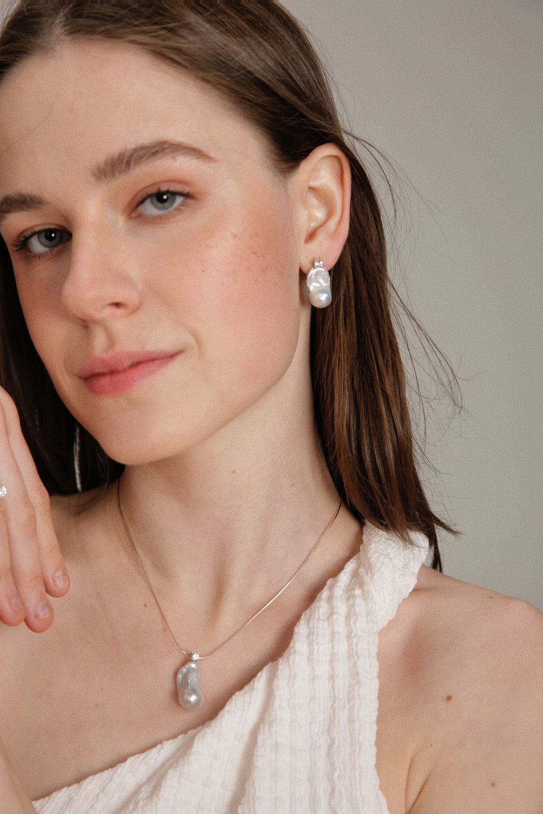 Introducing our Baroque Pearl Pendant Silver Chain Necklace. This stunning piece features a beautifully crafted baroque pearl pendant elegantly suspended from a sleek chain. Perfect for adding a touch of sophistication and individuality to any outfit, it’s ideal for both casual wear and special occasions. Shop now to elevate your jewelry collection!