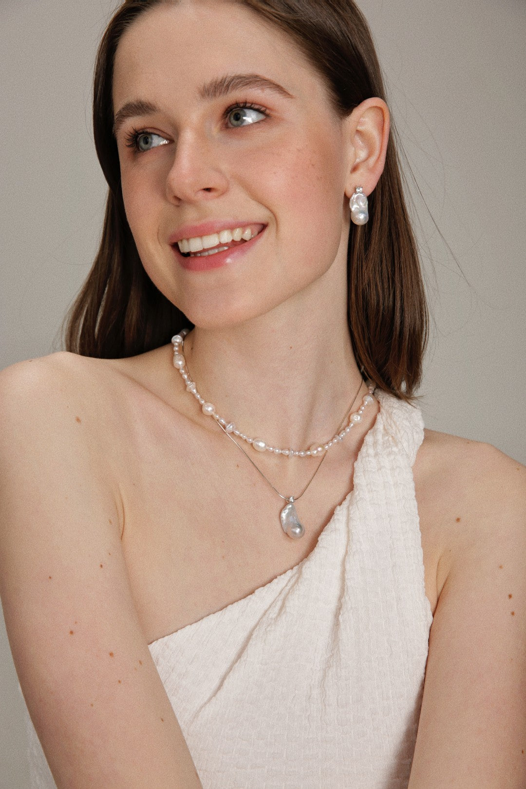 Baroque Pearl Pendant Silver Chain Necklace gembea jewelry