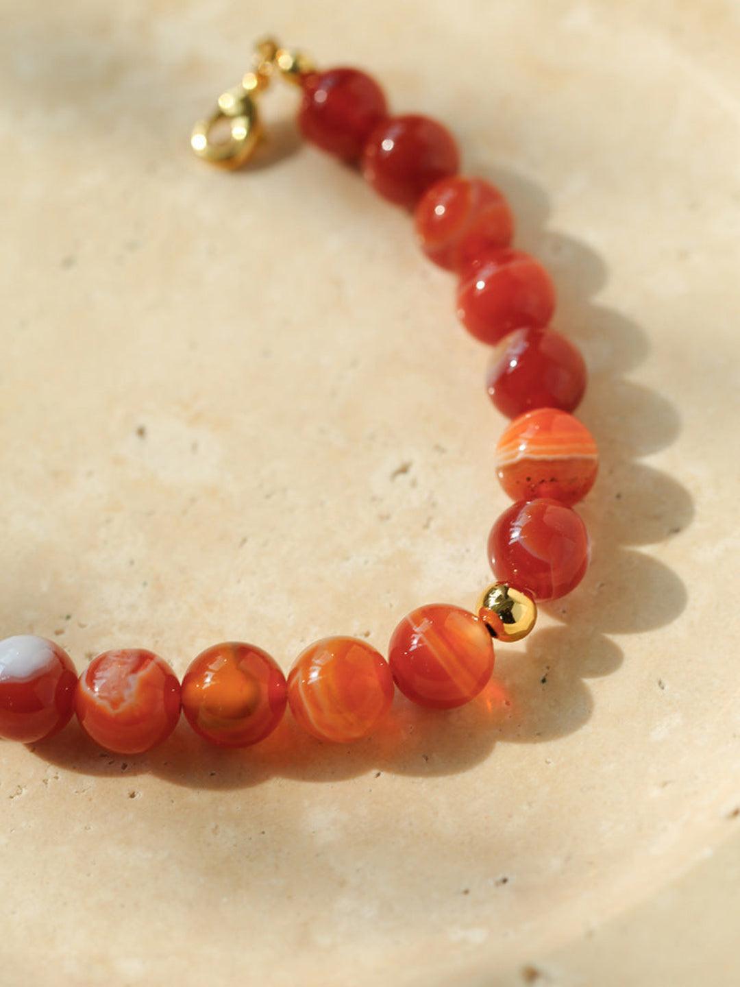 Primary Red Agate Round Beaded Bracelet - Gembea Jewelry