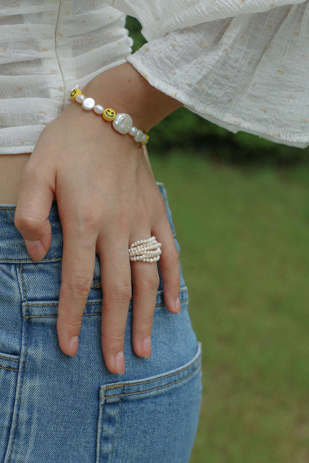 Hand-woven Multi-layer Small Rice Pearl Ring - Gembea Jewelry