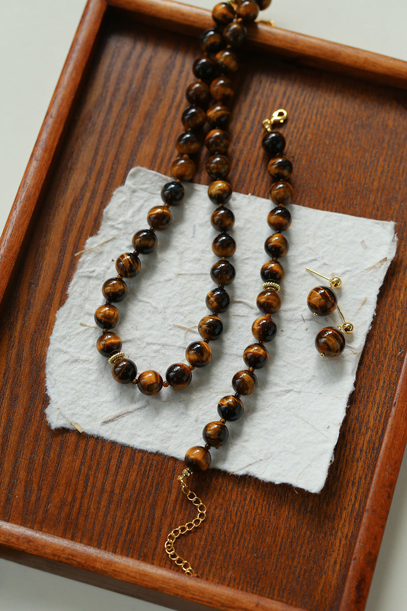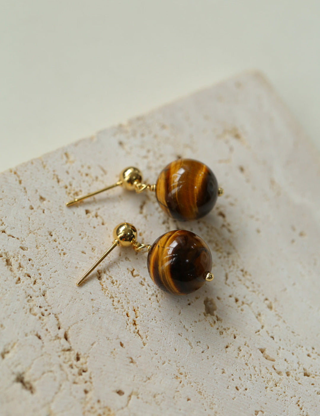 Tiger's Eye Stone Drop Earrings-Gembea Jewelry