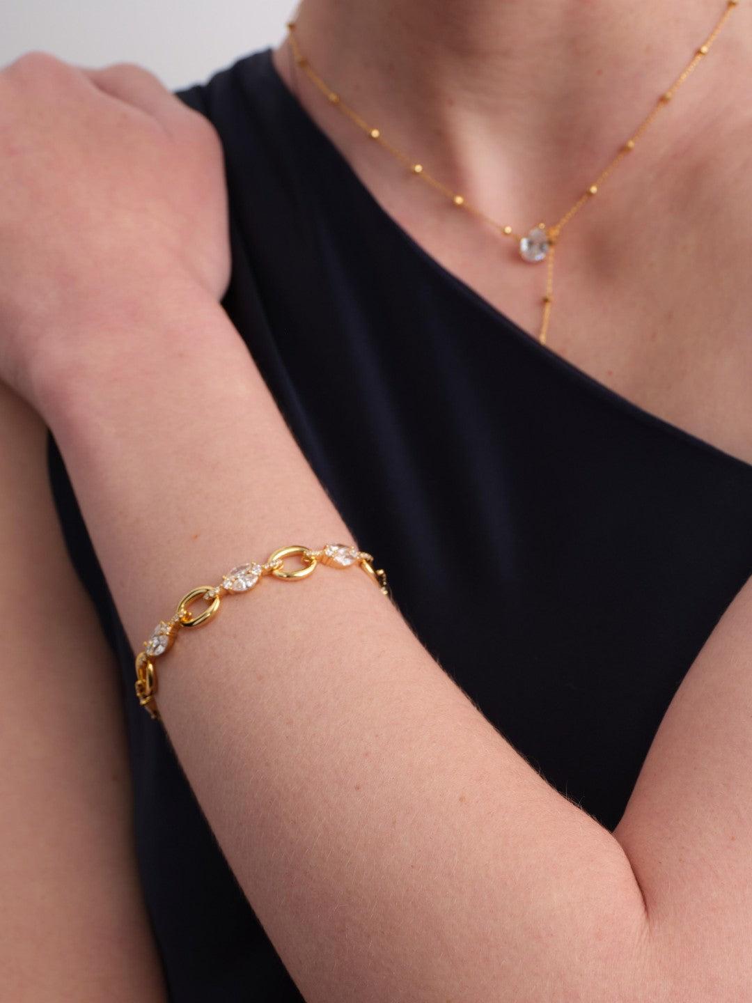 Interlock Halo Lab-grown Diamond Fine Bracelet Inspired by the idea of connection, the Interlock Halo Bracelet features oval high-carbon stones linked seamlessly with 925 sterling silver, gold-plated circular rings.The delicate sparkle of the stones contrasts beautifully with the smooth warmth of metal, symbolizing closeness, continuity, and quiet strength.Designed to move gracefully with you, it reflects light in a subtle yet captivating way — refined, timeless, and effortlessly elegant.