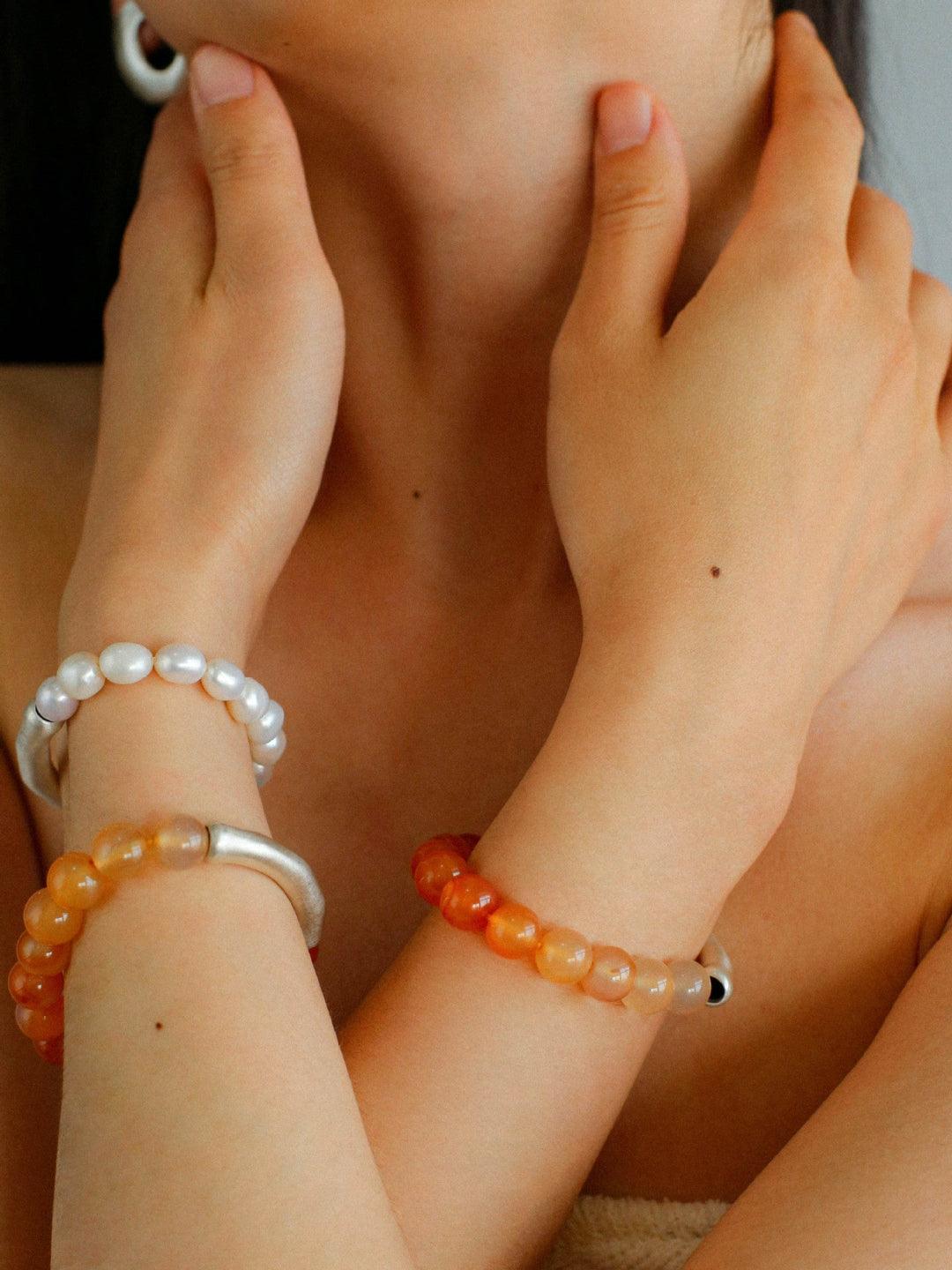 Red Agate Stretch Beaded Bracelet - Gembea Jewelry