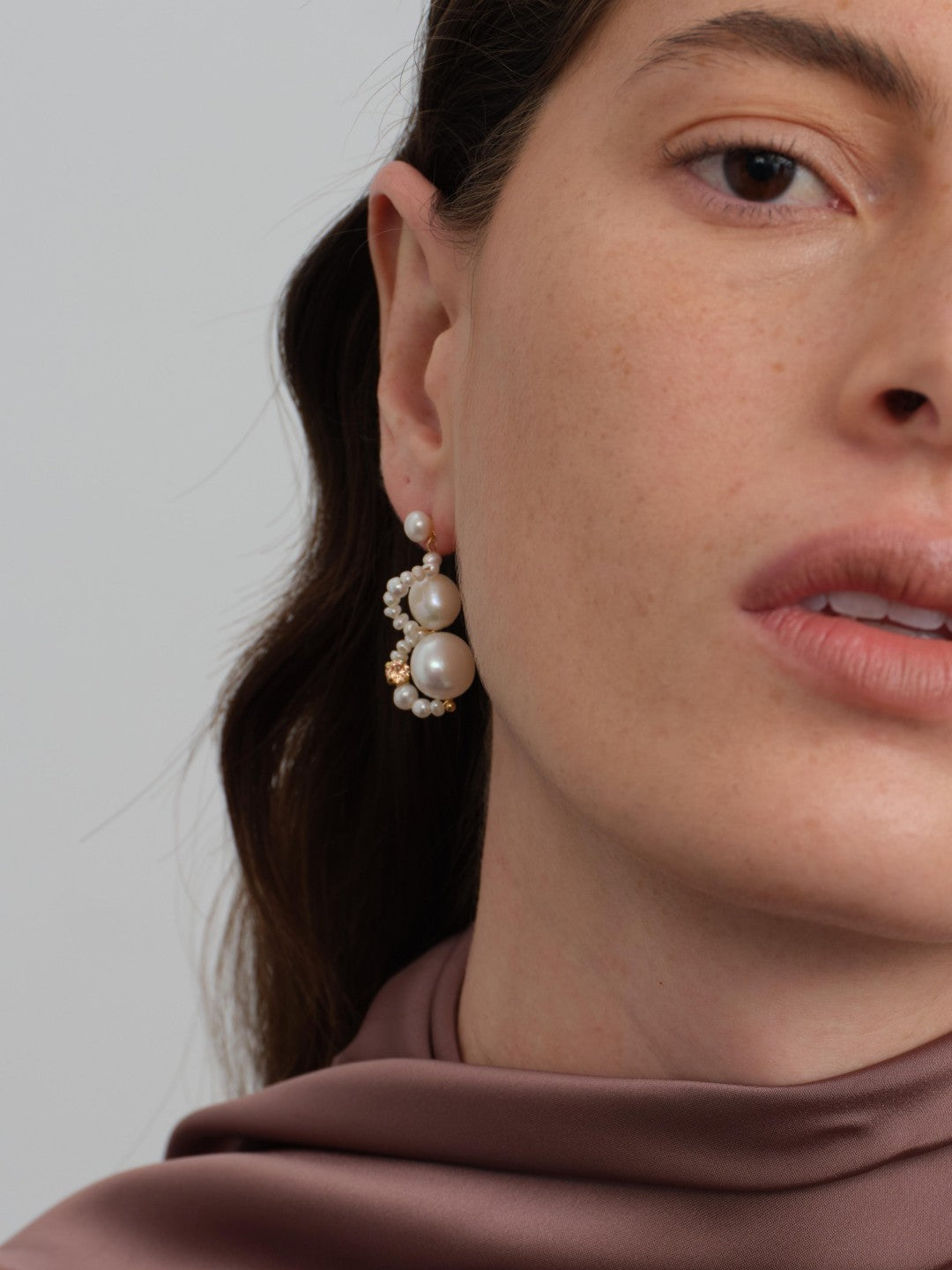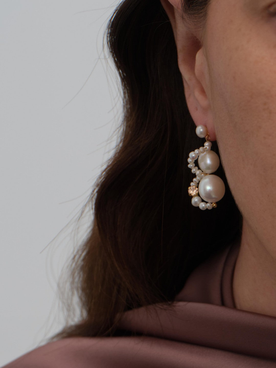 Nice Freshwater Pearl Drop Earrings Two slightly larger, irregular pearls are linked together, symbolizing the bride and groom’s bond, while tiny pearls encircle them like the blessings and love from family and friends, embracing and protecting their union.