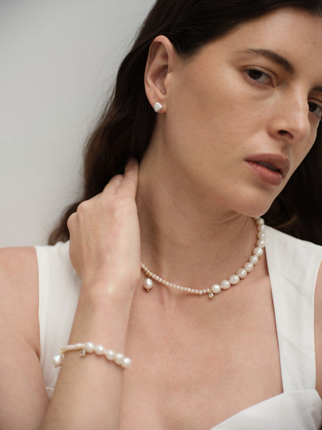 5) Natural Baroque Pearls: Baroque pearls are pearls that have an irregular or non-symmetrical shape. Baroque pearls can exhibit a variety of shapes, including oval, elongated, and even whimsical forms. Each pearl is uniquely shaped, making them one-of-a-kind.Baroque pearls celebrate individuality and uniqueness, making them a popular choice for those looking for something distinct and artistic in their pearl jewelry collection.