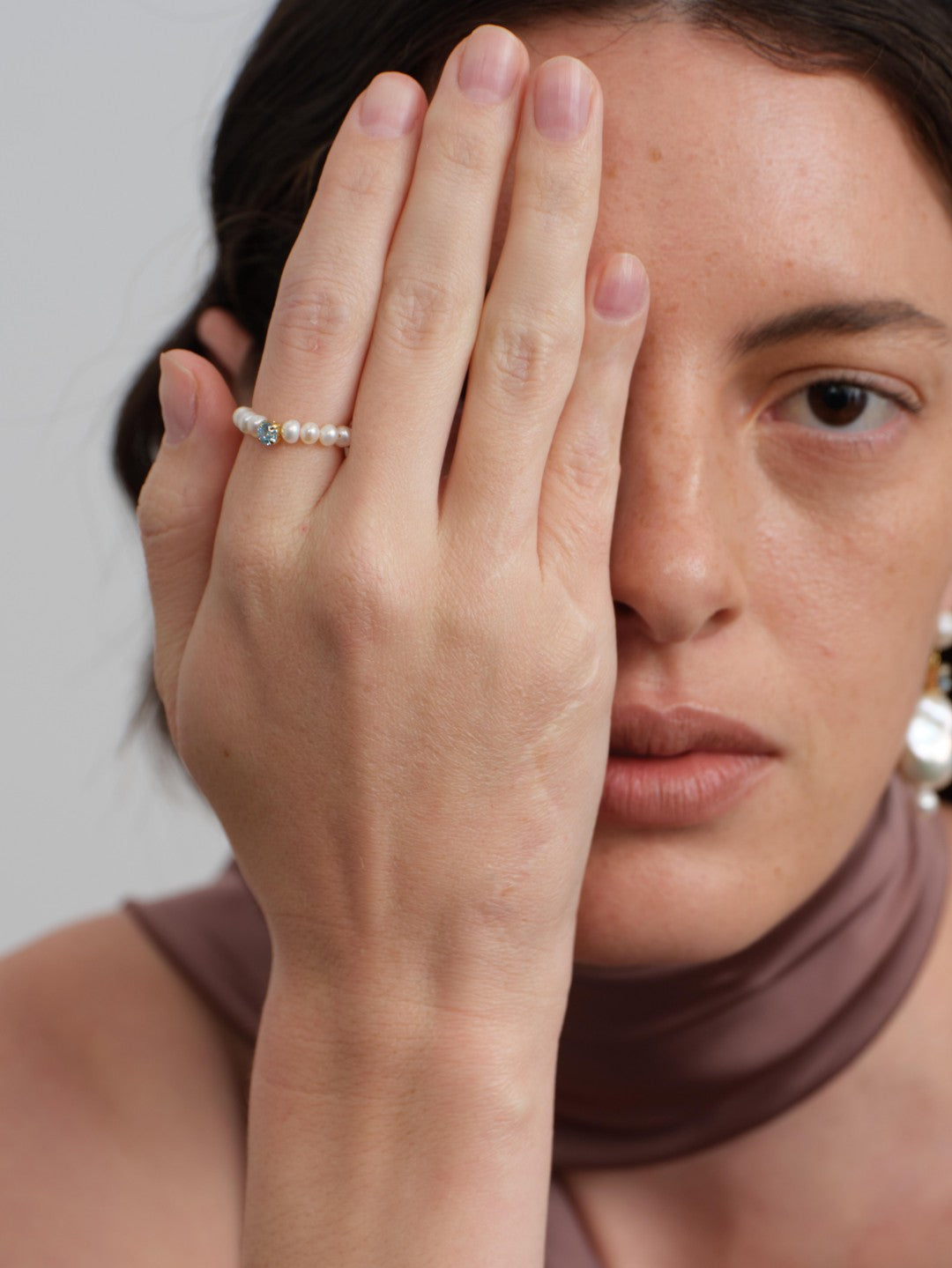 Amalfi Pearl Beaded Ring with Cubic zirconia gembea jewelry