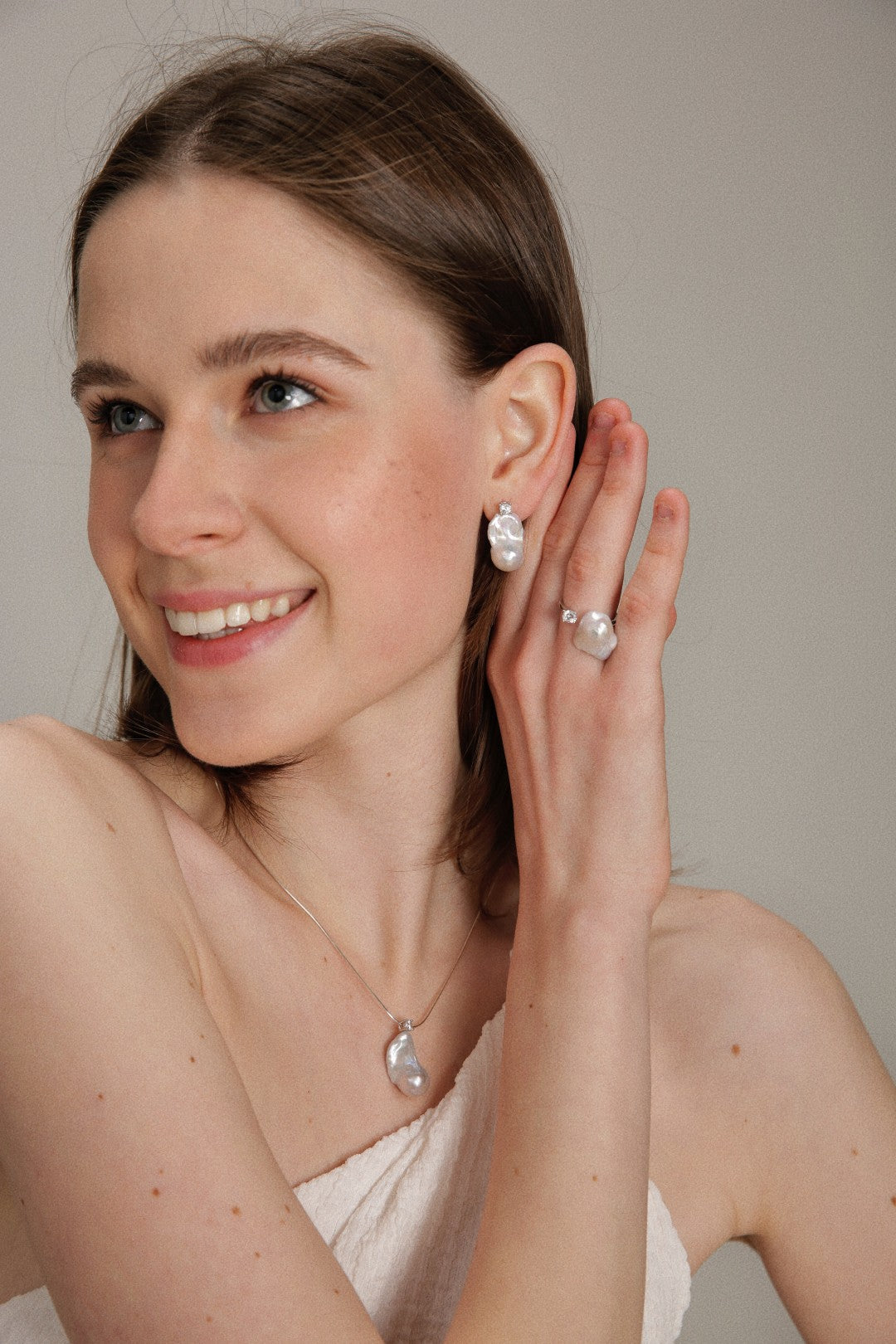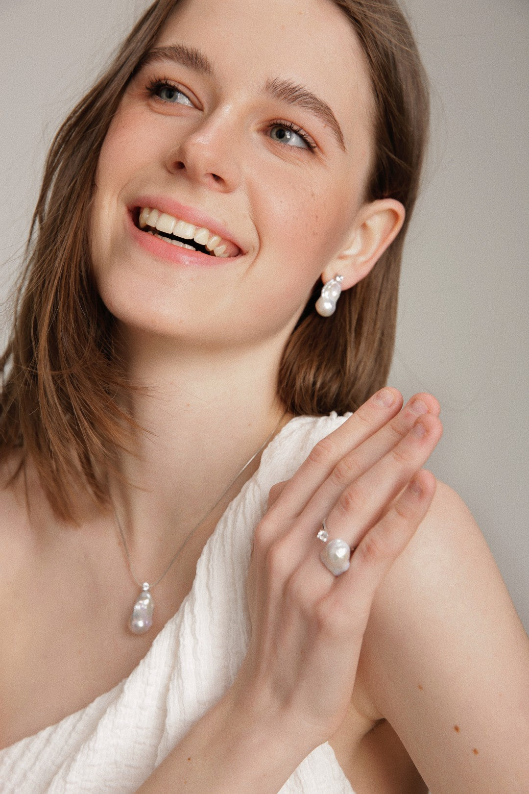5) Natural Baroque Pearls: Baroque pearls are pearls that have an irregular or non-symmetrical shape. Baroque pearls can exhibit a variety of shapes, including oval, elongated, and even whimsical forms. Each pearl is uniquely shaped, making them one-of-a-kind.Baroque pearls celebrate individuality and uniqueness, making them a popular choice for those looking for something distinct and artistic in their pearl jewelry collection.