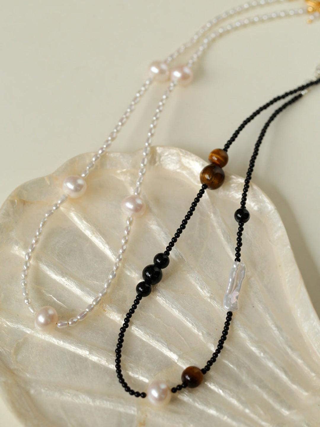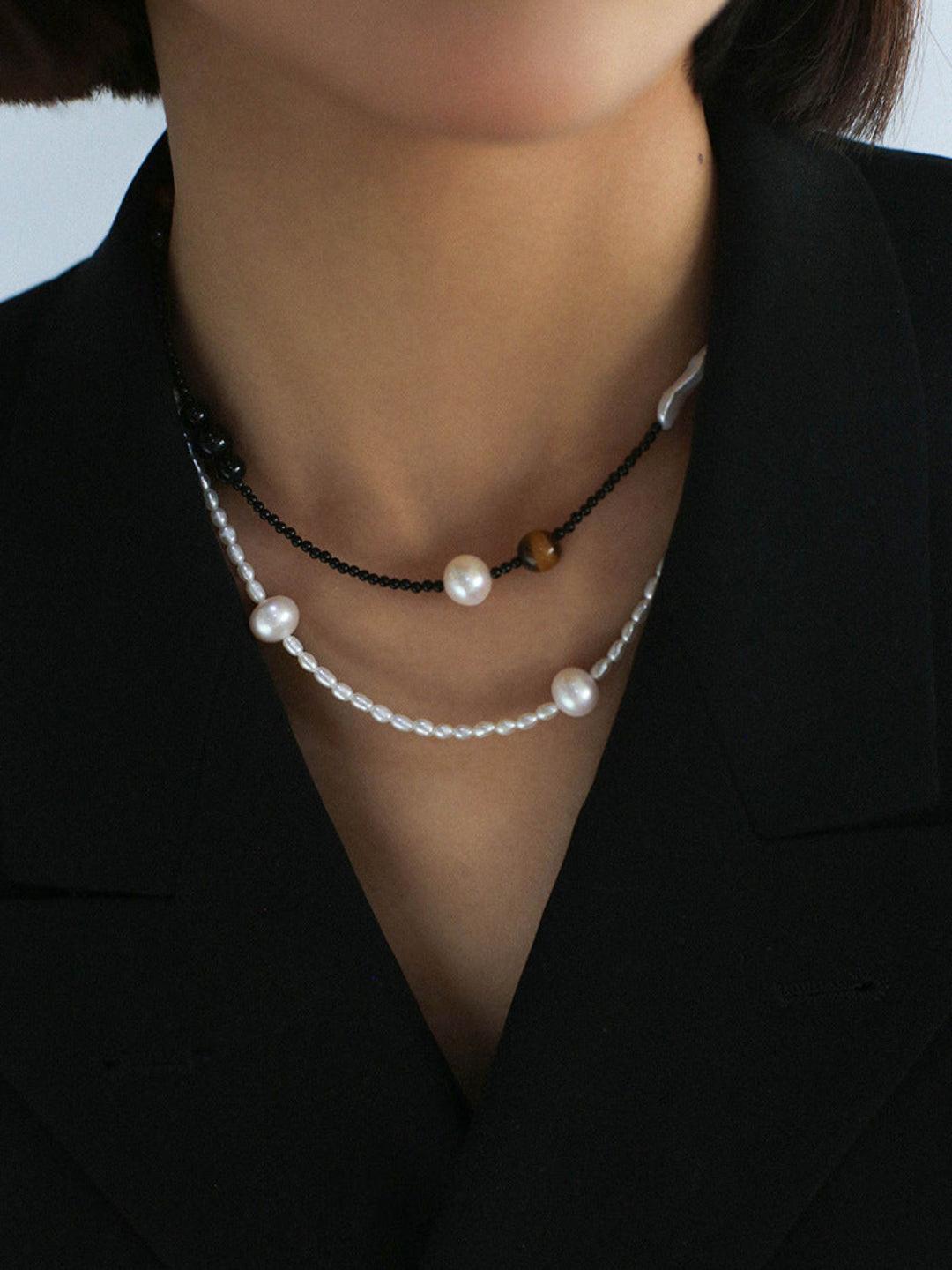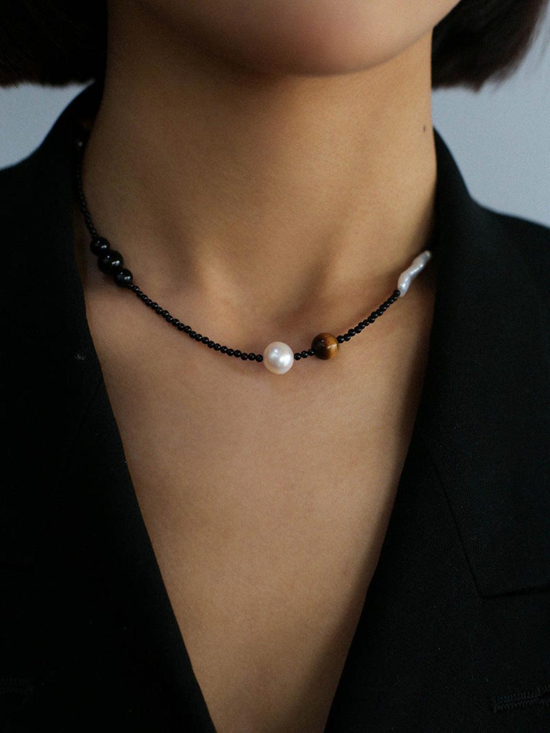 Sea's Embrace Series Pearl Black Agate Necklace - Gembea Jewelry