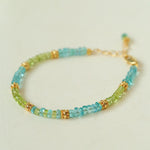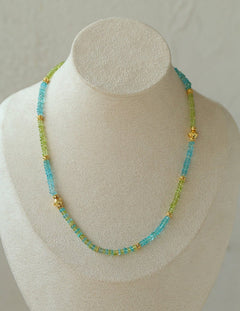 このコレクションは、フリーフォームの天然石、ブルーフォスフォシデライト、ペリドット、ムーンストーン、グレーラブラドライトなど、それぞれが独自の魅力を持つ高級クリスタルビーズを特徴としています。鮮やかな色彩と力強いエネルギーを持つこれらのクリスタルは、創造性と活力を刺激するデザインです。 🌈