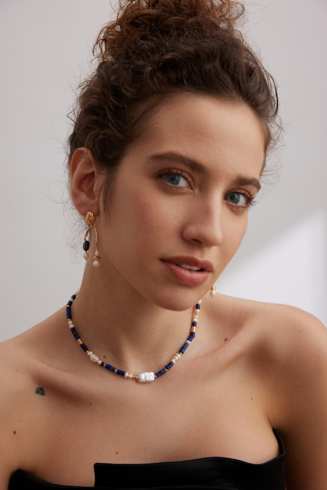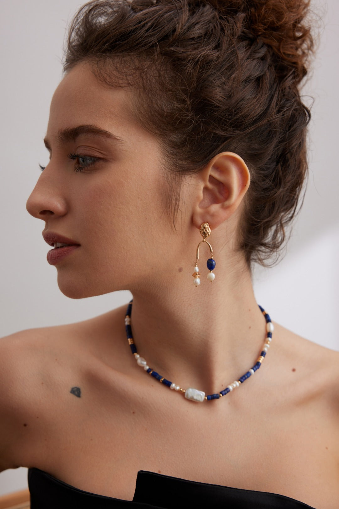 Ocean Pulse Lapis Lazuli Pearl Earrings